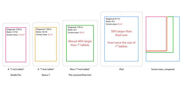 - Een 7.85 inch iPad (kleiner dan de huidige 9.7 inch ‘normale’ iPad dus)