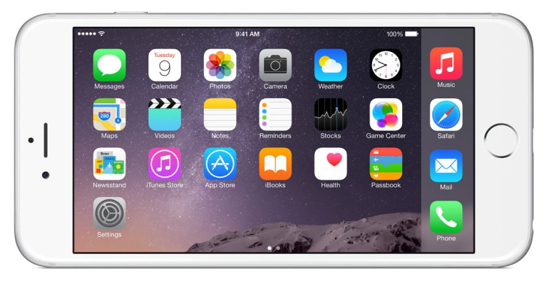 Apps zullen automatisch werken op de groter iPhone 6 Plus, maar developers kunnen er wel voor kiezen om hun apps te gaan optimaliseren voor het grotere scherm. Het nieuwe grote scherm heeft ook natuurlijk ook implicaties voor het gebruik met één hand. Apple weet nu ook wel dat je niet meer met je duim alle knoppen bovenaan het scherm kunt bedienen. Een nieuwe homeknop-combinatie doet de gehele interface tijdelijk naar beneden schuiven zodat je de de knoppen (bijvoorbeeld navigatie in Safari) kunt bedienen met je duim. Zo is gebruik met één hand, in ieder geval in theorie, nog steeds mogelijk.