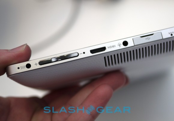 In vergelijking met de keyboard-vrije Eee Pad Transformer is de EP121 een stuk dikker. De reden hiervoor is dat de tablet meer actieve koeling nodig heeft – drie hoeken hebben gleuven voor ventilatoren en speakers – aangezien de Core i5 processor heter wordt dan Nvidia’s Tegra 2 op de nieuwe Eee Pad serie. Toch is de tablet verrassend licht, alhoewel de breedte van het apparaat het na enige tijd moeilijk maakt het in één hand te houden en met de andere hand te werken. Je kunt de tablet beter in de holte van je elleboog leggen of de bijgeleverde casing gebruiken die een stand is wanneer je hem openslaat.
