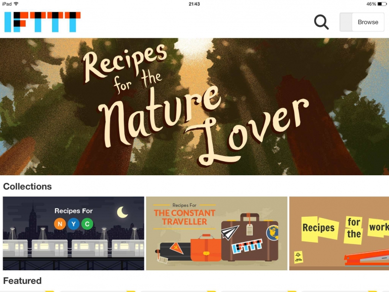 Als je net aan IFTTT begint kan de app behoorlijk overwelmend lijken, omdat er zoveel mogelijkheden zijn. Daarom is er ook een ’browse’ sectie, waarin je de recipes van anderen kunt bekijken. Die recipes kun je vervolgens met een klik installeren en gebruiken. IFTTT is gratis te downloaden.