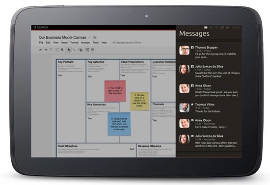 Ubuntu voor tablets is ontwikkeld voor gebruik op tablets en is dan ook ingericht op besturing middels touch. Zo kun je naar links en rechts swipen op de schakelen tussen apps, naar beneden swipen om de notificaties te bekijken en van links naar binnen swipen om je favoriete apps te bekijken. De focus van de software ligt op een universele hub voor het zoeken binnen je tablet, geïnstalleerde applicaties en gedownloade content. Ook is er een notificatiecentrum met toegang tot onder meer instellingen, mail en tweets. Daarnaast is er ondersteuning voor spraakbesturing.