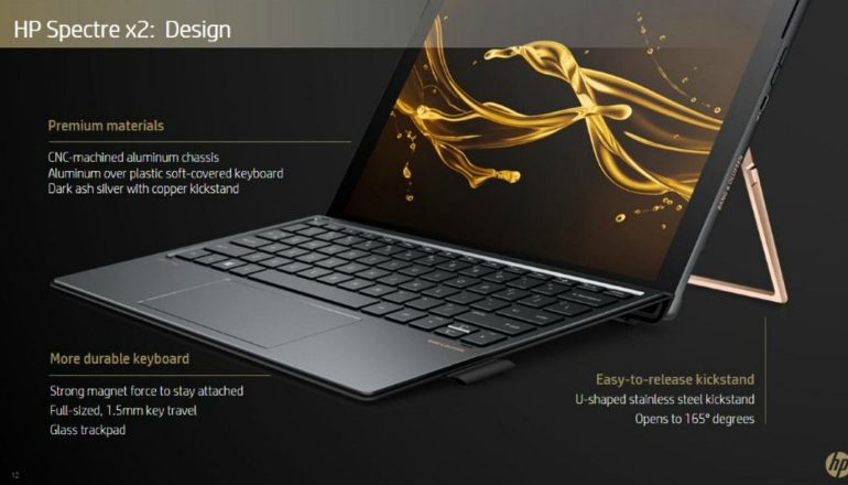 Ook heeft HP een nieuwe Spectre x2-convertible aangekondigd. De schermranden zijn ook hier flink dunner geworden: van 19,8 millimeter naar 13,75 millimeter. De nieuwe versie van de Spectre x2 heeft een 12,3″-scherm en een beeldverhouding van 3:2, in plaats van 16:9. De resolutie bedraagt 3000 bij 2000 pixels. Er zijn betere en grote speakers aanwezig, evenals een snellaadfunctie waarmee de tablet binnen een half uur voor de helft is opgeladen. Onder de motorkap zit een Intel Kaby Lake-processor en maximaal 16 GB aan werkgeheugen.