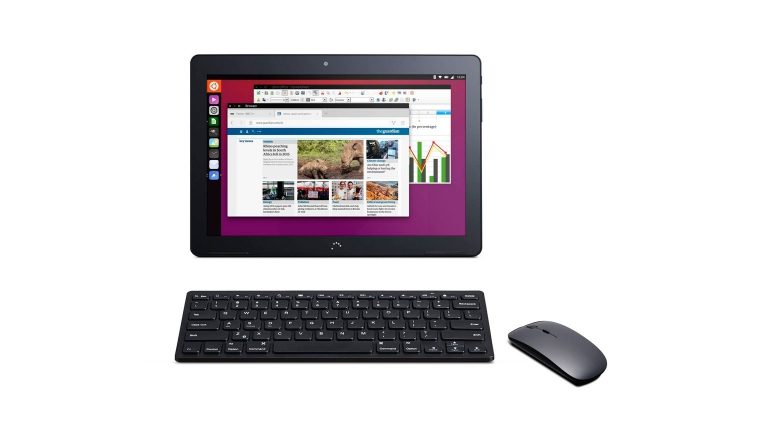 De tablet zelf heeft een scherm van 10,1 inch. Het OS past zich ook automatisch aan de manier waarop de tablet gebruikt wordt (pc of tablet). De resolutie is 1280 bij 800 pixels en onder de motorkap vinden we een 1,5 GHz MediaTek-processor en 2GB aan werkgeheugen. Let echter niet op de hardware, omdat deze tablet draait om z’n software: het apparaat bevat een mobiele versie van Ubuntu, die dus de mogelijkheid heeft te veranderen op basis van de accessoires die je aansluit. Mocht je dit principe herkennen, dan kan dat kloppen.