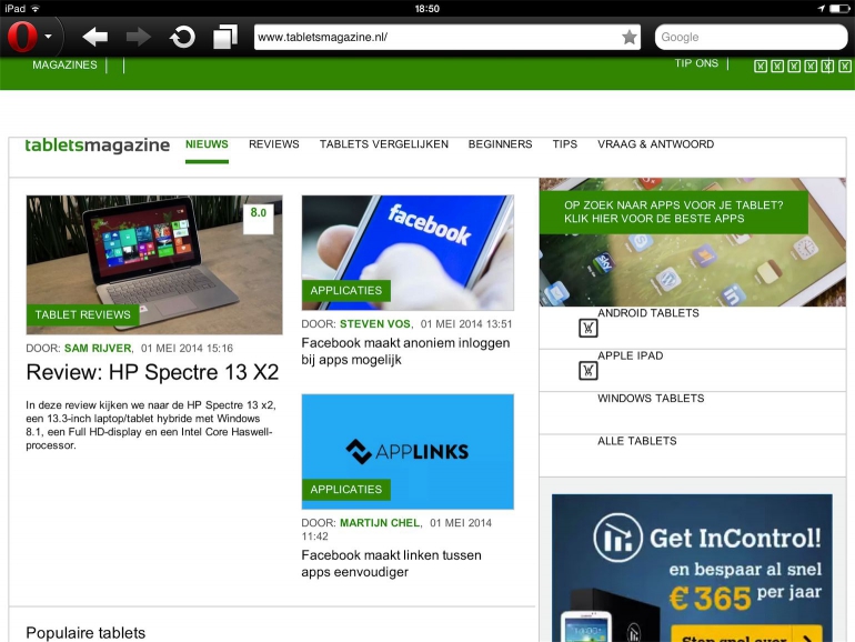 Toen Opera op de iPad uitkwam viel de app vooral op door zijn verbluffende snelheid. En Opera is nog steeds verbazingwekkend snel. Dat komt door techniek achter de app die websites verkleint. Bovendien laden websites hierdoor niet alleen razendsnel, maar het zorgt ook voor minder dataverbruik. Dat is handig wanneer je op vakantie gaat naar het buitenland waar internet duurder is. Opera is de meest geschikte browser wanneer je langzaam internet hebt en wanneer dat internet duur is. Websites laden sneller en verbruiken minder data wat zal resulteren in lagere kosten.