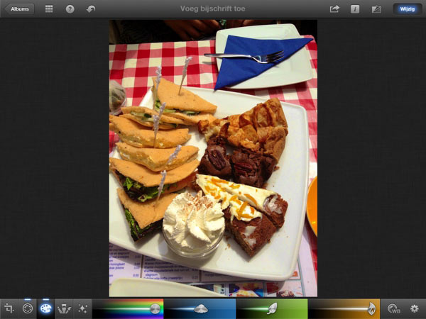 Om het rijtje af te sluiten de app van Apple zelf; iPhoto. Dit is ook de enige betaalde app in de reeks. De meesten zullen iPhoto al kennen van de Mac, het wordt standaard meegeleverd met iedere nieuwe Mac. Het is vooral bedoeld als beheertool waarmee je al je foto’s netjes ordent in albums en gebeurtenissen. Dit kan je één-op-één overzetten naar de Mac en vice versa.
