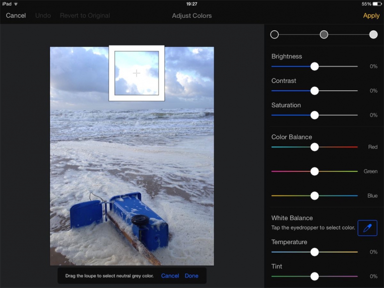 Pixelmator is een stuk krachtiger ten opzichte van VSCOcam, en kan prima gezien worden als Photoshop voor de iPad. Zo kun je zelf de witbalans bepalen of een foto scherper maken. Maar dat is nog niet alles: zo kun je met de repair tool ongewenste objecten, zoals mensen of prullenbakken uit je foto verwijderen, wat verbazingwekkend goed gaat. Ook ondersteunt Pixelmator net als Photoshop lagen, zodat je teksten toe kunt voegen zonder de afbeelding aan te passen.