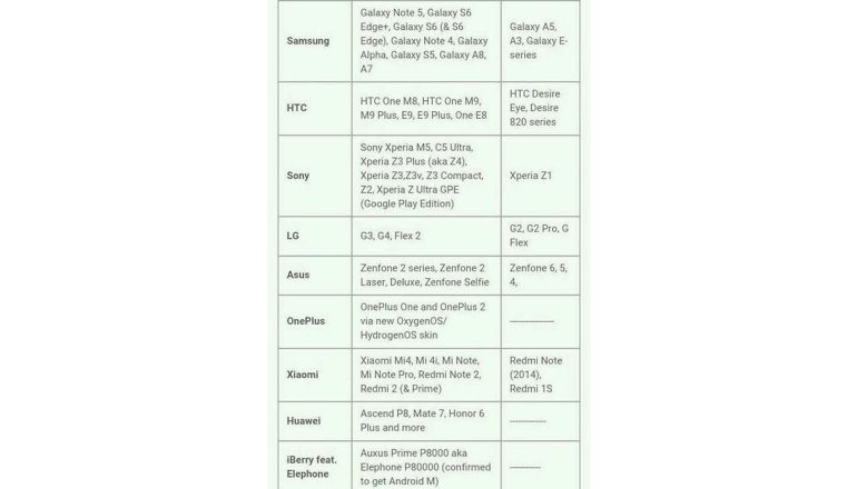 Nu is er een lijstje opgedoken die ons daar mogelijk wat meer verheldering over kan geven. Het is echter niet te zeggen of deze lijst accuraat is. Zo missen we nog enkele belangrijke toestellen, zoals bijvoorbeeld de Samsung Galaxy S4 of de Sony Xperia Z5-trio. Wel staan er een aantal Androids op die al een tijd verkrijgbaar zijn. Op maandagavond Nederlandse tijd gaf Google de factory images vrij van Android 6.0 Marshmallow. Mensen met een modern Nexus-apparaat kun nu al handmatig updaten naar Android 6.0 Marshmallow.
