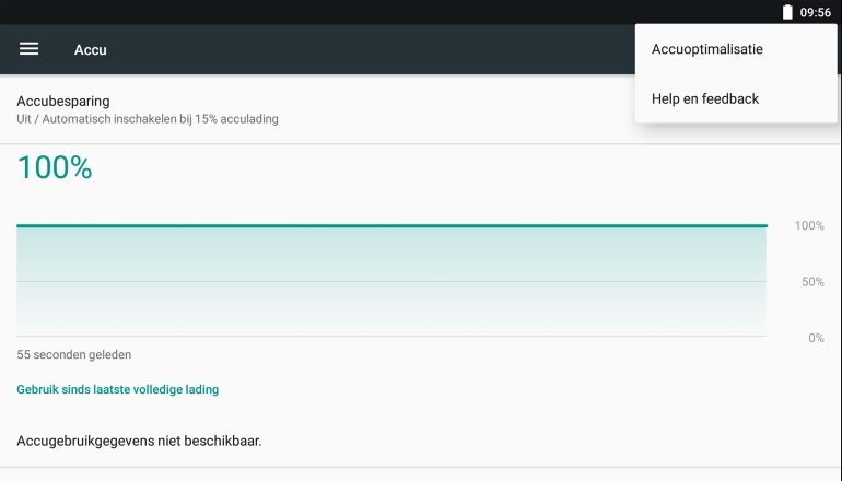 Dat doe je door wederom naar Instellingen en dan de accu te gaan. Daar zie je een grafiek met de accugebruikgegevens. Je ziet hoe lang de batterij al aan staat en hoe lang die nog ongeveer zal hebben, wanneer er niet veel verandert in je gebruik van het toestel. Onder de grafiek zie je een lijst met apps staan. Als het goed is staat bovenaan het scherm of bijvoorbeeld het Android OS. Is dat niet het geval en kom je daar bijvoorbeeld de app tegen die je net hebt uitgesloten, dan doe je er goed aan Doze alsnog te activeren voor het behoud van je batterij.