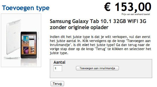 Voor het verkopen van je oude tablet ga je dus naar deze pagina, kies je de juiste tablet, stuur je de tablet op en krijg je een waardebon toegestuurd.