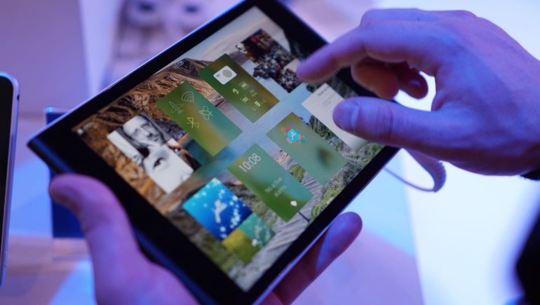 Via het homescreen, dat eigenlijk een soort dashboard is, krijg je toegang tot de belangrijkste functies van de tablet, waaronder de draadloze verbindingen, de browser, de camera en je media. Het is een compleet andere indeling dan we van Android en iOS gewend zijn, en zoals gezegd is het echt even wennen. Via een swipe van onderin het scherm krijg je bijvoorbeeld je applicaties te zien in een app-tray-weergave. Het unieke van de apps is overigens dat je op Sailfish OS ook gewoon Android-apps kunt draaien, terwijl er ook native apps voor het platform ontwikkeld kunnen worden. Echter, de Google Play Store is niet aanwezig.