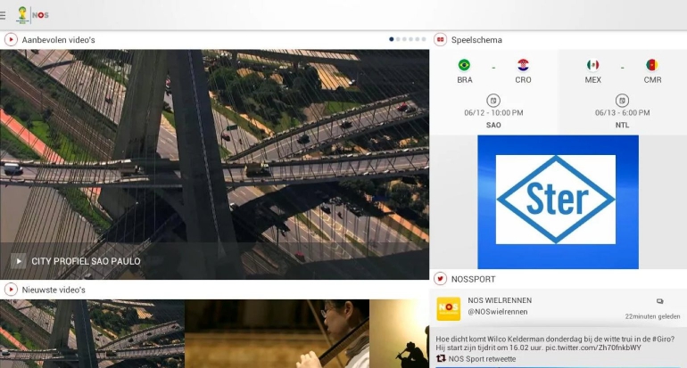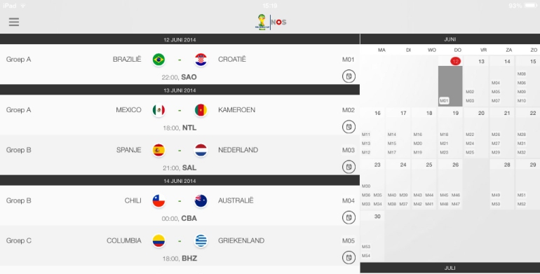De FIFA WK 2014 app, beschikbaar voor zowel Android als iOS, biedt geen live wedstrijden maar maakt van je tablet wel een ideaal tweede scherm voor tijdens de wedstrijd. De app biedt namelijk live alle belangrijkste statistieken van wedstrijden en individuele spelers, handig voor de echte voetbalfan. Ook kun je een goal of tackle terugkijken zo vaak je wilt, en heb je de keuze uit verschillende camerastandpunten. Deze momenten zie je terug op de tijdlijn van een wedstrijd. Interessant is ook dat je twee teams of twee spelers direct met elkaar kunt vergelijken aan de hand van verschillende statistieken. Na en voor wedstrijden kun je in de app alles te weten komen over de teams middels video’s, kun je achtergronden lezen, kun je meer te weten komen over de speelsteden, kun je het speelschema bekijken en zie je het laatste nieuws.
