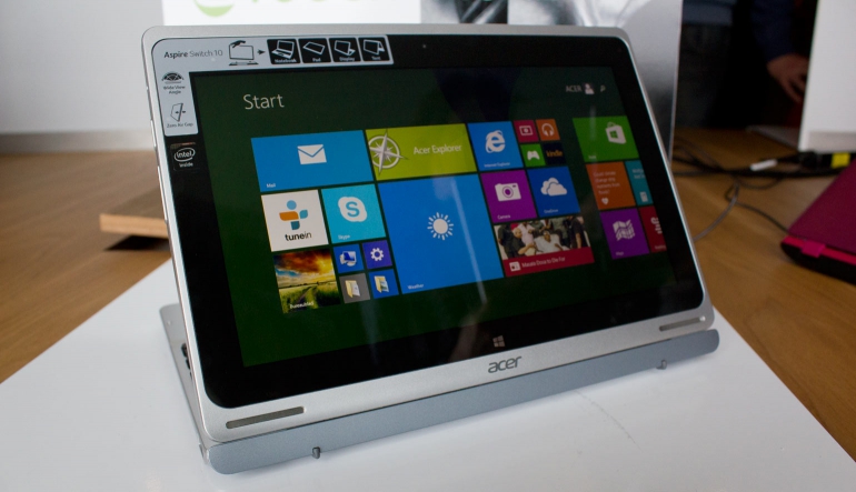 De Acer Aspire Switch 10 is een zogenaamde hybride, wat inhoudt dat het display als losse tablet gebruikt kan worden en aan het keyboard kan worden gekoppeld om het geheel als laptop te gebruiken. Het apparaat is voorzien van een 10.1-inch display met een 1.366 bij 768 pixels resolutie en draait op Windows 8.1-software met een gratis versie van Office 2013.