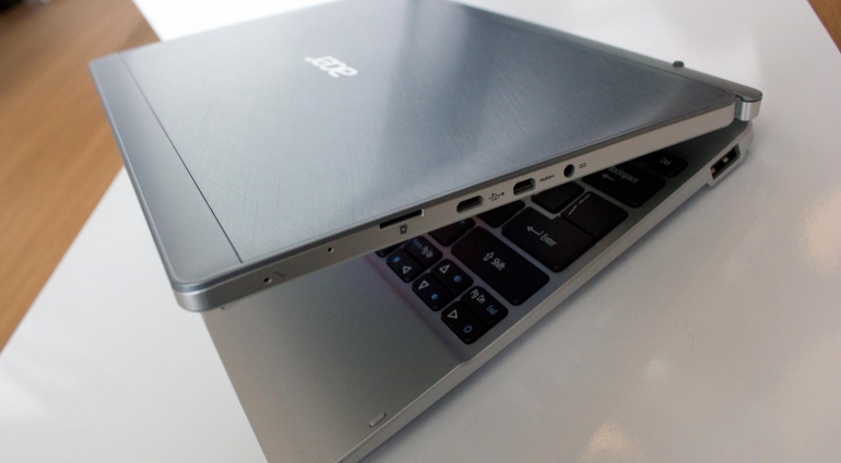 Het design van de Aspire Switch 10 is verder niet veel bijzonders. De behuizing is deels van plastic en deels van aluminium gemaakt, voelt hier en daar wat fragiel aan en heeft een totaalgewicht van 1,17 kilogram. De achterzijde heeft een geborsteld aluminium afwerking en ziet er wel weer chique uit. Wanneer de tablet gekoppeld is aan het keyboard heeft het geheel een profiel van 20,2 millimeter.