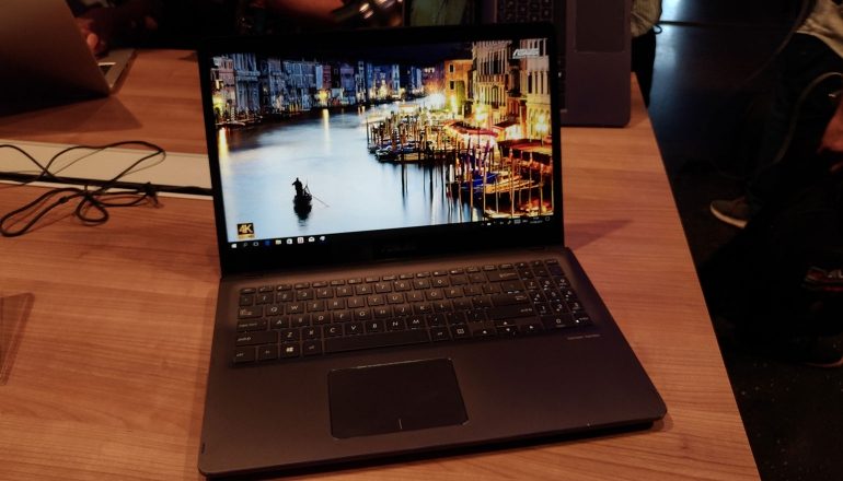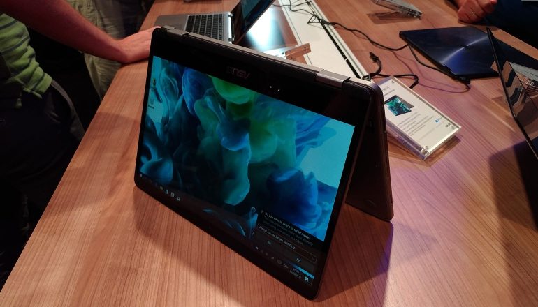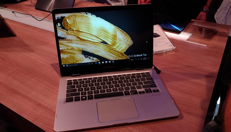 De Asus ZenBook Flip 14 is, zoals je in ons nieuwsbericht erover kunt lezen, voorzien van een Kaby Lake quadcore-processor van Intel (een i7), tot 16 GB aan werkgeheugen en de Nvidia GeForce MX150 d-gpu (graphics processing unit, de grafische kaart). En dat terwijl de behuizing op z’n dikst slechts 13,9 millimeter dun is. Al met al is het redelijk indrukwekkend wat Asus in een dergelijke behuizing heeft kunnen proppen. De laptop voelt, in welke stand je hem ook gebruikt, snel en accuraat aan, ook in ze testzaal voor pers voor IFA.