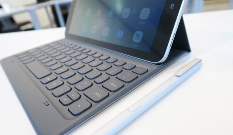 Overigens kun je ook een keyboard-cover aansluiten op de Galaxy Tab S3, middels de POGO-aansluiting. Het keyboard biedt ruimte voor alle QWERTY-toetsen en ondanks het gebrek aan ruimte en een minimale travel tikt het toetsenbord aardig fijn weg. Ga je echt uren werken dan wordt het wat oncomfortabel maar even je mailtje onderweg afmaken of een document bijwerken gaat zonder problemen.