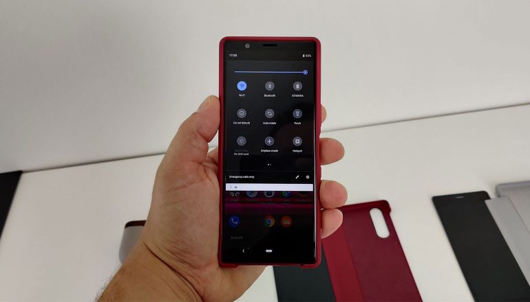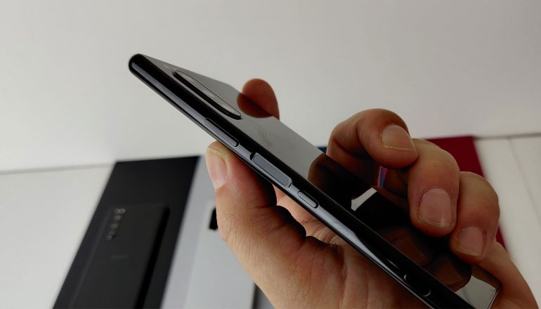 Wat overigens opvallend is, is dat Sony het toestel als een compacte smartphone in de markt zit. Toegegeven, wanneer je hem naast de Sony Xperia 1 legt, dan is die een flink stuk kleiner. Daarnaast is het apparaat ook ontzettend smal, wat bijdraagt aan het idee dat het een klein, compact model is. Maar in de praktijk hebben we te maken met een smartphone met een 6,1″-scherm, dus zo compact is die niet. Desondanks werkt de illusie prima wanneer je hem in je hand hebt: het toestel vóelt compact aan en dan is de missie geslaagd.