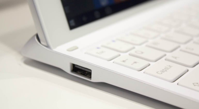 De ingebouwde LTE-verbinding kon vanzelfsprekend niet uitgetest worden vanaf de MWC stand in Barcelona, dat is iets dat we hopelijk in de toekomst gewoon vanaf de bank, nee het westerpark, kunnen gaan testen. Qua design is het apparaat weinig bijzonders; een standaard vormgeving en veelal plastic materialen. Precies dat wat we eigenlijk ook verwacht hadden. Maar, door het gebruik van plastic is het geheel lekker licht, ligt het scherm prima in de hand en kun je alles comfortabel met je meedragen. Natuurlijk is het wel belangrijk om te vermelden dat het toetsenbord dus een los deel is, waarin de tablet normaal (als een laptop) of achterstevoren (voor een presentatie bijvoorbeeld) in geplaatst kan worden. Op de tablet zelf zit overigens één microusb-poort en een microhdmi-poort. Het dock komt met een microusb-poort en een volwaardige usb-poort.