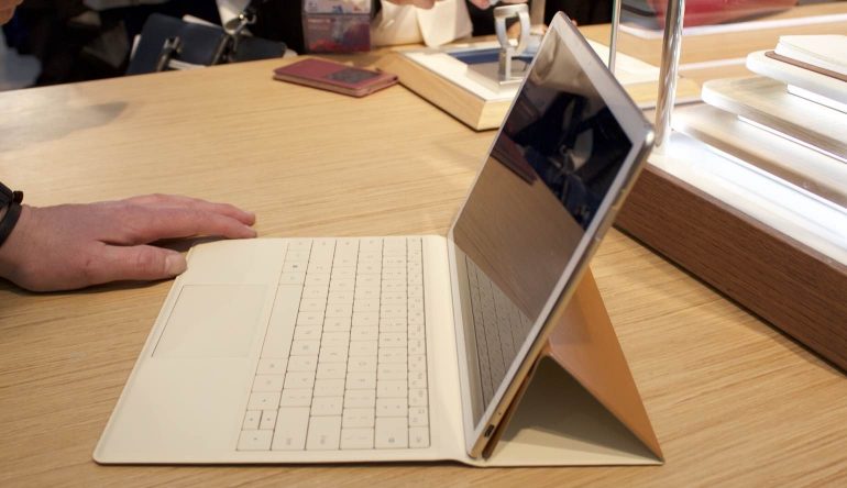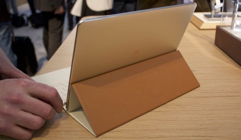 Het toetsenbord dat helemaal bij de MateBook past wordt niet meegeleverd voor de prijs vanaf 799 euro. Deze moet je voor 149 euro zelf aanschaffen. Dat is een hoop geld maar op het eerste gezicht is het een prima toetsenbord die ook nog eens mooi ogende en handige bescherming biedt voor je tablet. Je kunt het toetsenbord gebruiken om de tablet in twee hoeken te zetten, al is het ons door verschillende vertegenwoordigers nog steeds niet duidelijk gemaakt hoe het origami-vouwen precies werkt. Je hebt in ieder geval toegang tot de twee meest gebruikte hoeken om comfortabel op een tafel of bureau te kunnen tikken.