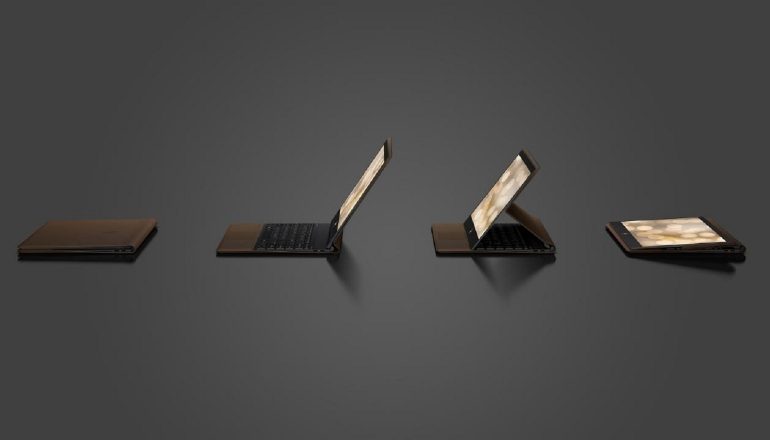 HP heeft vandaag een nieuwe convertible onthuld: de HP Spectre Folio. In eerste instantie lijkt het te gaan om een hybride tablet met los toetsenbord. Een nadere blik op het apparaat laat echter zien dat het één geheel is, waarbij je het scherm en het toetsenbord in verschillende standen kunt schuiven. Tevens uniek is de leren buitenkant van het apparaat. Dichtgeklapt lijkt het apparaat dan ook op een schrijfblok met een leren omslag.