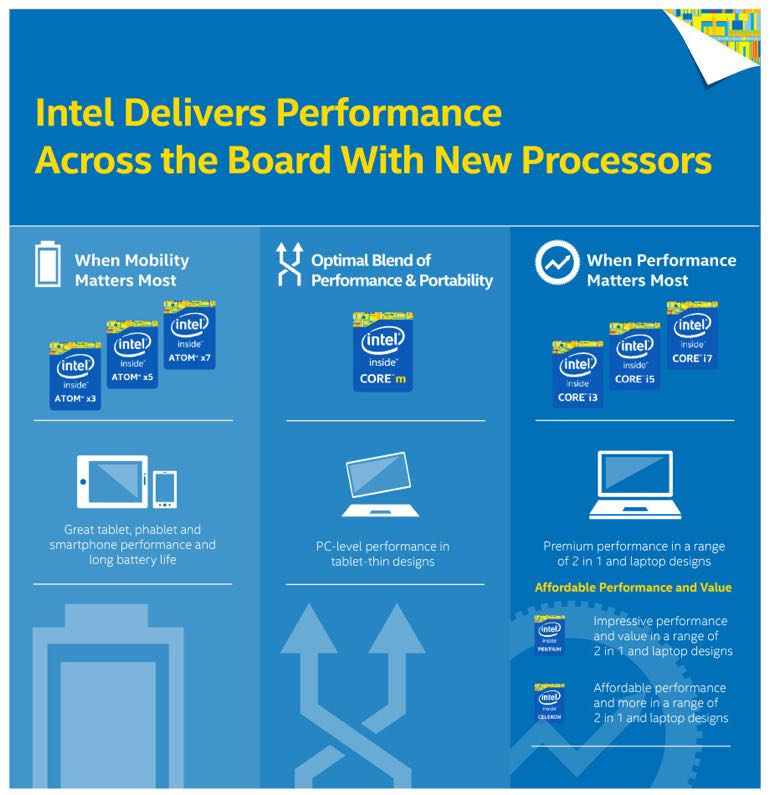 De nieuwe naamgeving moet het marktaandeel van Intel, met name in de mobiele markt, verder doen groeien. Sinds twee jaar probeert de chipfabrikant goedkope chips te pushen en steeds meer fabrikanten van smartphones en tablets kiezen voor één van de Atom-chips van het bedrijf. Zo zagen we onder meer tablets van Lenovo, Asus en Acer met een Intel chip uitgerust worden.