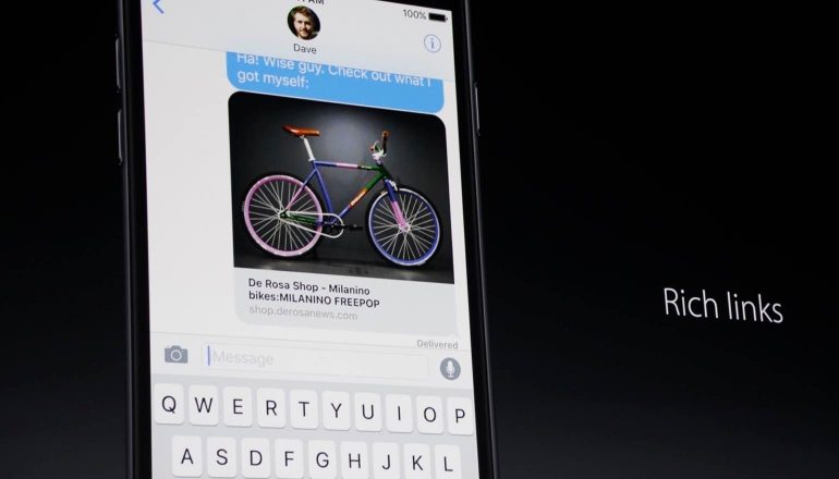 De Berichten-app van Apple ondersteunt in iOS 10 voortaan ‘rich textlinks’. Dit betekent dat je bijvoorbeeld direct interessante informatie, afbeeldingen en andere media ziet van een link die gedeeld wordt. Daarbij zijn de emoticons nu driemaal zo groot, wordt het eenvoudiger om snel een foto toe te voegen en deze van tekst of emoticons te voorzien, zijn de voorspellingen slimmer en kunnen emoticons nog sneller bepaalde woorden vervangen (een pizza in plaats van het woord pizza). Je kunt de spraakwolkjes binnen iMessage aanpassen, foto’s verbergen met de onzichtbare inkt-functie en animaties toevoegen om een bericht te accentueren. Een andere handige functie is de ondersteuning voor geschreven tekst. Je kunt voortaan dus ook een geschreven stukje naar iemand anders sturen via iMessage.