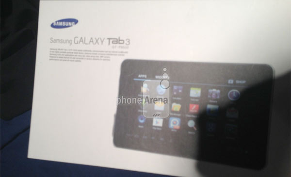 Als we de bronnen van Phonearena mogen geloven dat is de tablet in bovenstaande en onderstaande afbeelding de derde generatie Samsung Galaxy Tab, waarschijnlijk de 7 inch of 8 inch variant. Echter is de foto te onscherp en zien we vreemd genoeg geen alom bekende TouchWiz interface terug op op de verpakking waardoor we niet kunnen uitsluiten dat er met deze afbeeldingen geknoeid is. We kunnen amper iets uit de afbeeldingen halen maar als dit de nieuwe Galaxy Tab 3 is dan heeft Samsung de camera rechts bovenin het frame verwerkt en lijken de speakers weer verdwenen te zijn naar de achterzijde van de tablet.