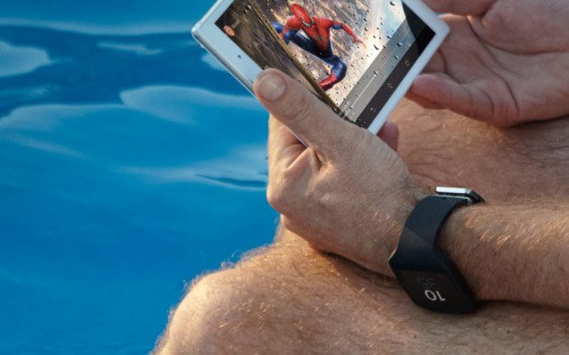 Daarnaast is het mogelijk dat de tablet op de foto tegen water kan en dus naast het zwembad gebruikt kan worden. De druppels op het scherm zitten overigens niet in de getoonde screen van de Spider-man-film, dus die komen ongetwijfeld van het zwembad af. Over iets meer dan een week kondigt Sony nieuwe producten tijdens de IFA 2014 aan en mogelijkerwijs wordt deze tablet – de Sony Xperia Z3 Tablet Compact? – daar aangekondigd.