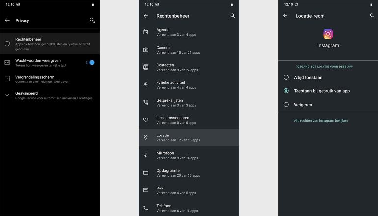 Met de release van Android 10 heeft Google gelukkig dezelfde verandering doorgevoerd. Wanneer apps in het vervolg om toestemming vragen tot je locatiedata, dan heb je drie opties: toestaan, toestaan op het moment dat de app gebruikt wordt en weigeren. De tweede optie voorkomt dus dat apps onbeperkt toegang hebben tot je locatiegegevens. Dat is een fijner balans voor je privacy: want zo kun je een app als Google Maps dus gebruiken wanneer je hem nodig hebt, terwijl de app verder niet meer kan zien wat je nog meer doet.