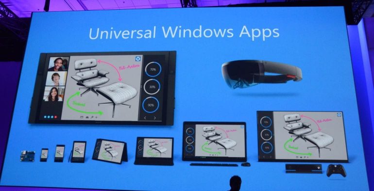 Ook ‘universele apps’ staan centraal. Dat houdt in dat één app uit de Windows Store op alle apparaten kan draaien. Zo moet bijvoorbeeld de Netflix-app uit de Windows Store op je smartphone, je tablet en je desktop draaien zonder dat je hier zelf een andere app moet downloaden of een instelling moet veranderen. Voor ontwikkelaars moet het daarbij eenvoudiger worden om apps te ontwikkelen, onder meer met code die zo goed als compleet op eigen server staat en diverse nieuwe technieken (.Net en Win32).