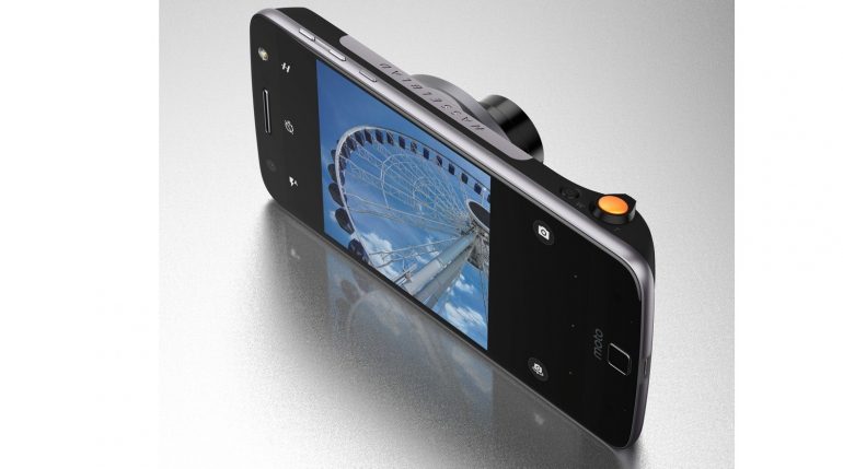 Dat werkt als volgt. Op de achterkant van de Moto Z Play is een magnetische connector aangebracht. Daar zijn modules voor ontworpen, die daarop kunnen worden geklikt. De modules vormen op dat moment één geheel met de telefoon.