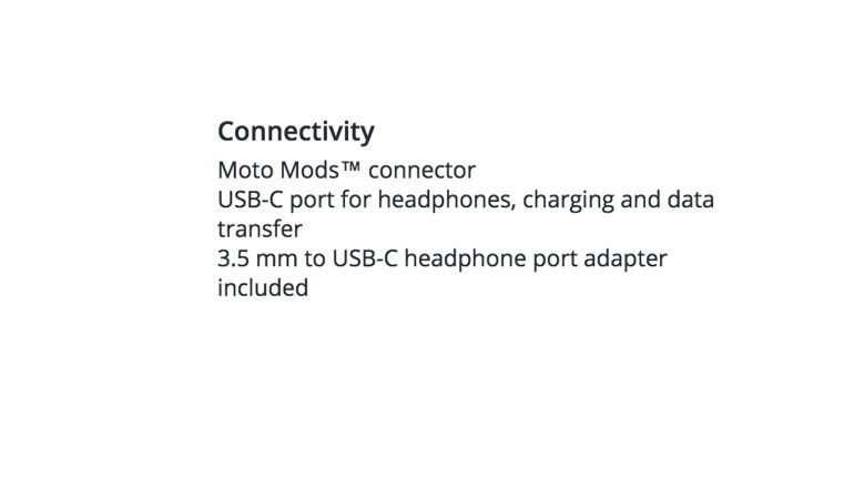 Tabletsmagazine heeft de specificaties van deze nieuwe telefoons eens beter bekeken. Wij kwamen er achter dat je nog steeds een gewone oortelefoon kunt aansluiten op de Moto Z, want er wordt een verloopsnoertje bijgeleverd dat in de usb type-c poort kan worden gestoken. Zoals hieronder valt te lezen: