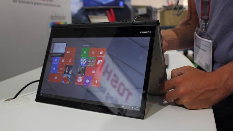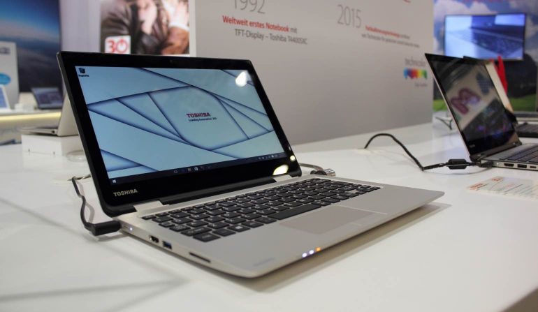De Toshiba Satellite Radius 12 zal in het vierde kwartaal van 2015 vanaf 1449 euro te koop zijn. Daarvoor krijg je een 4K-scherm, 8GB aan werkgeheugen en 256GB aan interne opslagruimte op een SSD-schijf. Ook de Toshiba Satellite Radius 14 is een convertible en een vijf-in-één-apparaat, dat wordt aangedreven door de zesde generatie Intel Core-processors en is geoptimaliseerd voor Windows 10. Dit model beschikt over een deklaag over het scherm, waardoor de inhoudt goed zichtbaar blijft wanneer je gebruikmaakt van het touchscreen.