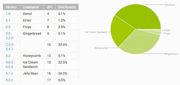 Elke maand publiceert Google de cijfers over de verdeling van het Android besturingssysteem, kijkend naar de apparaten die verbinding maken met de Google Play Store. Aan de hand daarvan worden percentages opgesteld waardoor we kunnen zien welke versie van het OS minder gebruikt wordt, en welke versies in toenemende mate op smartphones en tablets te vinden zijn.
