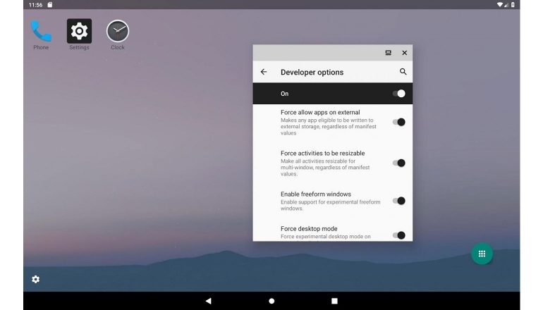 Een andere grote nieuwe functie voor Android Q is de desktopmodus. Voorheen was je aangewezen op andere fabrikanten, zoals Samsung en Huawei, maar nu werkt Google dus aan native ondersteuning. Wanneer je deze modus activeert vanuit developer options dan worden apps in free-form windows weergeven, staan onderop de drie navigatieknoppen en zie je bovenin beeld de statusbalk staan. Uiteraard heb je hier nog een usb-c-naar-hdmi-kabel en een extern beeldscherm voor nodig. Heel veel is hier nog niet over bekendgemaakt.
