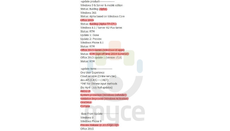 Uit het document blijkt dat Microsoft de Windows 9 preview in het tweede of derde kwartaal van 2015 wil uitbrengen. Het besturingssysteem verkeert momenteel in de alpha-fase, waardoor een dergelijke datum zeker niet onmogelijk is. Andere geruchten gaan uit van een eerdere release; april 2015.