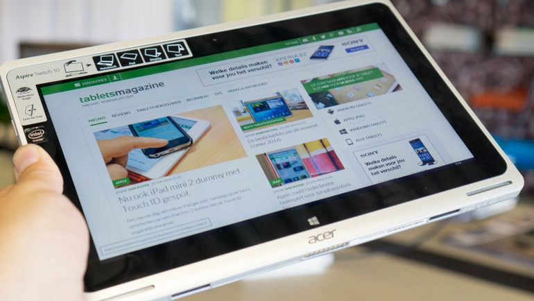 Het scherm van de Acer Aspire Switch 10 is eerste instantie een beetje een tegenvaller. Met een 10.1-inch formaat en een resolutie van 1366 x 768 pixels is er eigenlijk niet direct iets om bijzonder positief over te zijn. De resolutie komt wat ouderwets over op papier maar er valt in praktijk gewoon goed genoeg mee te werken, zeker op het beperkte formaat dat een 10.1-inch scherm te bieden heeft. De kijkhoeken en kleurweergave vallen op, maar dit keer in positieve zin.