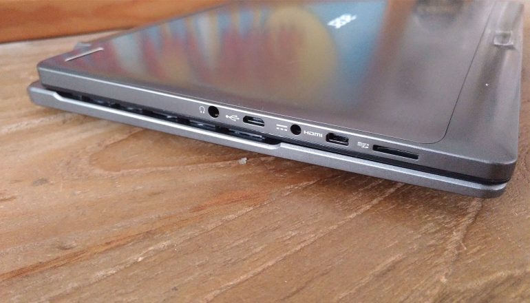 Gelukkig is de tablet voorzien van een aantal connectiviteitsopties. Zo is er een micro-hdmi- en een micro-usb-poort. Ook is er een koptelefoonaansluiting en vinden we er een micro-sd-kaartsleuf op terug. Alle aansluitingen zitten aan één kant. Aan de andere kant zijn geen aansluitingen te vinden. Wanneer je het toetsenbord aansluit op de tablet, dan krijg je nog toegang tot een grote usb 2.0-poort, waar je je accessoires op kunt aansluiten. En uiteraard zijn ook wifi en bluetooth aanwezig, maar qua aansluitopties blijft het daar helaas bij.