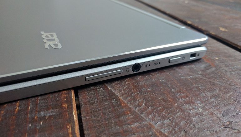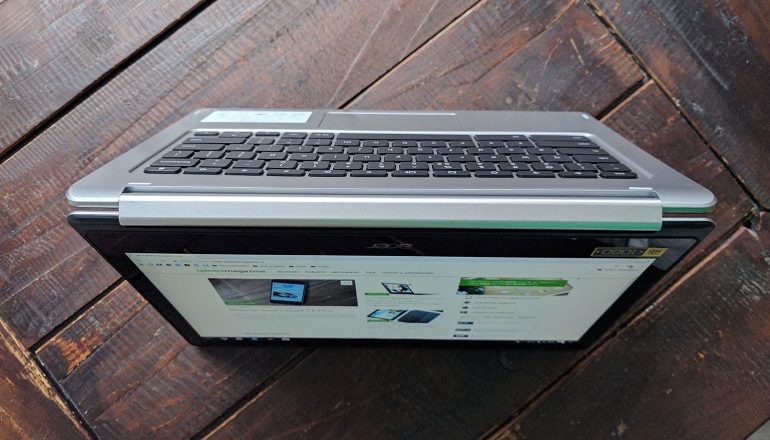 De Acer Chromebook R 13 heeft een volledig metalen omhulsel. Ja, daardoor is het apparaat zwaarder dan een tablet of convertible gemiddeld is, maar dit betekent ook een stevige bouwkwaliteit en een premium design. Het scharnier is aan de buitenkant omhuld met rubber en dat voelt goedkoop aan, maar is wel te verklaren. Als er ergens op bespaard kan worden is dat het wel en het doet verder niet af aan de functionaliteit van de Chromebook. Je kunt hem namelijk verschillende posities gebruiken, zoals laptop-, tablet- en presentatiemodus.