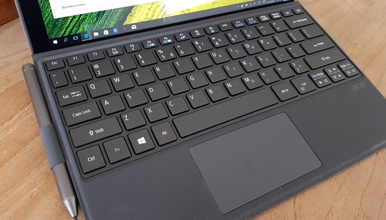 Zoals we inmiddels verwachten van Acer levert het bedrijf zowel een toetsenbord als een stylus mee in het pakket. Wanneer je de Acer Switch 5 dus zou kopen, dan haal je een compleet pakket in huis (in tegenstelling tot bijvoorbeeld de Microsoft Surface Pro). Het toetsenbord is gemakkelijk vast te klikken aan de tablet en biedt een comfortabele typervaring aan. De binnenkant is gemaakt van een zachte stof, waardoor je er rustig je polsen op kunt laten rusten. Ook is de hoek waarin je typt meer dan prima en geschikt voor uren werk.