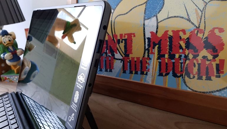 We hadden het net al even over de kickstand, en daar willen we nu nog iets dieper op ingaan. Hoewel de stand goed is weggewerkt in het design (zoals ingebouwde kickstands dat altijd zijn), is het helaas zo dat-ie niet heel erg gebruiksvriendelijk is. De houder springt meteen in een vaste houding en geeft verder weinig bewegingsmogelijkheden. Je kunt de tablet wel in een andere hoek zetten als je wil, maar je merkt in dat proces dat de kickstand daar niet op gebouwd is. Met te weinig gewicht schiet de stand ook weer terug in de vaste positie.