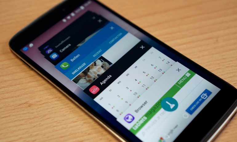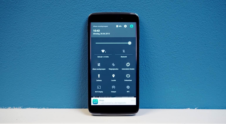 Alcatel heeft ervoor gekozen hun skin redelijk beperkt te houden. Er zijn wel een aantal speciale apps meegeleverd en niet ieder app-icoontje op de telefoon is helemaal standaard, maar over de breedte is en blijft Android goed herkenbaar en zul je dus niet teveel hoeven te wennen aan deze phablet. Een paar van de aanpassingen die de moeite waard zijn om te bespreken zijn als volgt: via het dubbel tikken/tappen op het scherm kan je het scherm vergrendelen of ontgrendelen. Er is een ‘reversible’ modus waardoor je de telefoon ook ‘op z’n kop’ kunt gebruiken en er is een speciaal lock-scherm waarop je extra snel toegang kunt krijgen tot verschillende apps en toepassingen. Denk hierbij aan de selfiecamera, een QR code scanner en de rekenmachine. Allemaal vrij handig.