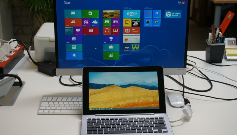 Het hele idee van de Asus Transformer Book Trio is natuurlijk dat je het beste van twee werelden krijgt. Android als tablet OS en Windows 8 als laptop OS. Asus is in dat opzicht goed geslaagd en doet wat het belooft. Dat de Windows-computer eigenlijk gewoon volledig in het toetsenbord verstopt zit en de tablet eigenlijk vooral als display gebruikt is een mooie extra, omdat je deze systemen dus los van kan draaien mocht de situatie daarom vragen. Het delen van resources en mogelijkheden maakt de Asus Transformer Book Trio echter extra speciaal. In Android kan je ‘alles’ van het dock gebruiken, inclusief accu. Andersom kan je via de Windows-omgeving ook ‘alles’ van de tablet gebruiken, inclusief accu en microSD-kaartlezer.