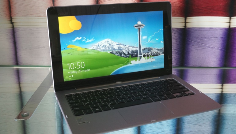 Zoals gezegd is de Asus Transformer Book Trio met 304.92 x 193.78 x 23.6 mm niet heel compact en met de 1.7 kilo ook niet erg licht te noemen. Door de luxe materialen zoals glas en aluminium voelt de Asus Transformer Book Trio wel erg luxe aan. Overigens is het keyboard-gedeelte wel voornamelijk van plastic gemaakt maar ook daar mag je qua look and feel niet al te veel over klagen. Wat mij betreft is de behuizing van deze Asus Transformer Book Trio dus wel geslaagd.