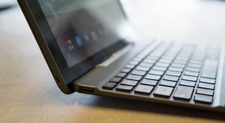 Het dock is niet voorzien van een extra accu. Dat is jammer met oog op de gebruiksduur. In eerdere generatie Transformer Pad tablets had de accu ook een belangrijke rol in het brengen van een balans tussen het gewicht van de tablet en het toetsenbord. Gelukkig heeft Asus het door een handig design en een lichtere tablet voor elkaar gekregen om nog steeds een stabiel pakket te kunnen bieden. Het dock heeft overigens wel een USB poort, zodat het nog steeds mogelijk is om een muis of andere accessoire aan te sluiten.