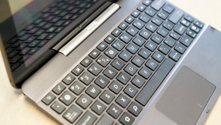 De toetsen zijn van het typische Asus-type. Omdat we hier over een 10.1-inch tabletscherm hebben dat de boel qua afmetingen ietwat beperkt zijn de toetsen net wat krap en klein. Het zijn wel island style toetsen die allemaal los in de behuizing verwerkt zitten. De toetsen kunnen lekker ver ingedrukt worden (goede travel) en hebben aardige weerstand. Helaas zijn de gebruikte veertjes niet enorm ‘springy’ en vallen de toetsen niet heel snel en lekker terug in hun ruststand. Persoonlijk hou ik wel van een lekker springerig aanvoelend toetsenbord. Zowel het gevoel als het formaat van de toetsen is iets waar goed aan te wennen is, dus een enorm issue zou ik het niet noemen.