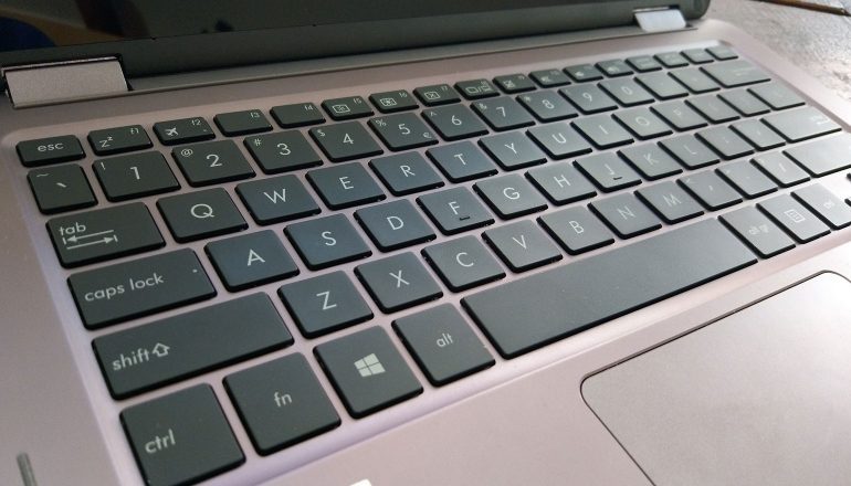De Asus ZenBook Flip beschikt over een fijn toetsenbord. De toetsen zijn lekker dun, maar bieden gelukkig genoeg feedback aan om zeker te weten dat een bepaalde toets is ingedrukt. Daardoor hebben we al snel blind kunnen typen. Echter, sommige knoppen (rechts bovenin bijvoorbeeld) lijken net even te ver te liggen van het midden, waar je handen zich bevinden, of zijn net te klein. En dat betekent dat je soms, wanneer je een liggend streepje nodig hebt, een andere toets indrukt. Dat kan op den duur irriteren, maar kun je wel aan wennen.