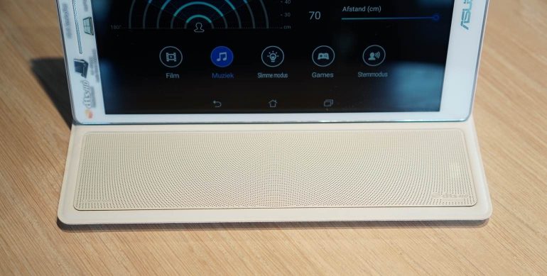 Het verschil kun je maken met de 5.1 DTS Audiocover die je kunt gebruiken in combinatie met deze Asus ZenPad 8.0. Let er wel op dat je deze ook op moet laden want anders is kwaliteit schrikbarend slecht. Gebruik je de cover echter zoals bedoeld dan is het een best een heel aardige accessoire voor de Asus ZenPad 8.0. De audiocover beschikt over 5 losse speakers en een subwoofer, die allemaal in een soort audiobar oriëntatie zijn verwerkt in de cover. Het is duidelijk dat bij design van deze cover vooral het kijken van een film in het achterhoofd gehouden is.