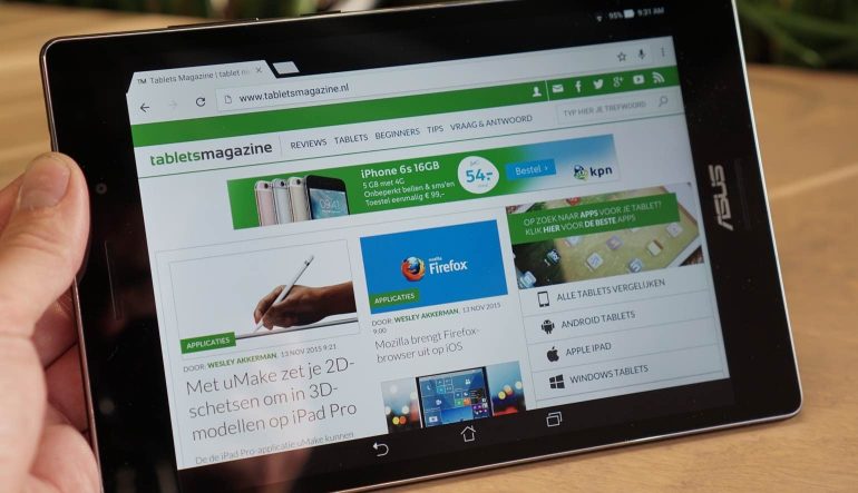 De Asus ZenPad S 8.0 (Z580C) is een erg fijne tablet om te gebruiken, vooral het scherm gooit hoge ogen. De ietwat vierkante beeldverhouding maakt ook dat deze tablet erg geschikt is voor zaken zoals browsen op internet, verwerken van e-mail, social media en het lezen van bijvoorbeeld digitale tijdschriften. Natuurlijk is deze beeldverhouding in theorie iets minder geschikt voor het kijken van video’s, maar dat is met een 8-inch scherm waarschijnlijk ook niet de belangrijkste taak van de tablet.
