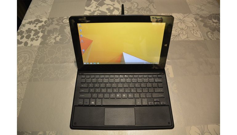 Wie deze tablet bestelt, doet er goed aan om meteen het bijbehorende, speciaal voor deze tablet geproduceerde toetsenbord mee te bestellen. Dat is geen bluetooth-toetsenbord, maar een cover met ingebouwd keyboard dat via de aansluitingen onderaan de tablet verbinding maakt. Dat werkt meteen. De aansluiting is magnetisch, waardoor de tablet direct op de goede plaats klikt.
