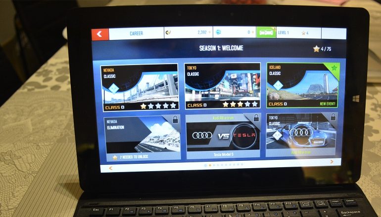 Zoals bezoekers van Tabletsmagazine gewend zijn, doen we hier niet aan benchmarks: die zijn doorgaans weinig betrouwbaar en geven weinig feitelijke informatie over het dagelijks gebruik. We hebben uit de Windows Store het racespel Asphalt 8 gedownload, dat het beste zonder toetsenbord kan worden gespeeld en lekker snel en met goede reacties op de bewegingen van de gebruiker in beeld wordt gebracht, zonder enige vertraging of hikkerige beelden. Dat telt. Het populaire spel Minecraft hebben we ook eens onder Windows geïnstalleerd, om te zien dat hiermee net zo snel en goed kan worden gespeeld als op een gangbare pc. Wil je echt zeer zware spellen doen, dan is de keuze voor een goedkope tablet als de Chuwi sowieso niet zo logisch, dus hier beoordelen we de tablet dan ook niet op. We geven de Chuwi een goede beoordeling voor snelheid en prestaties, zeker gezien de prijs van de tablet.
